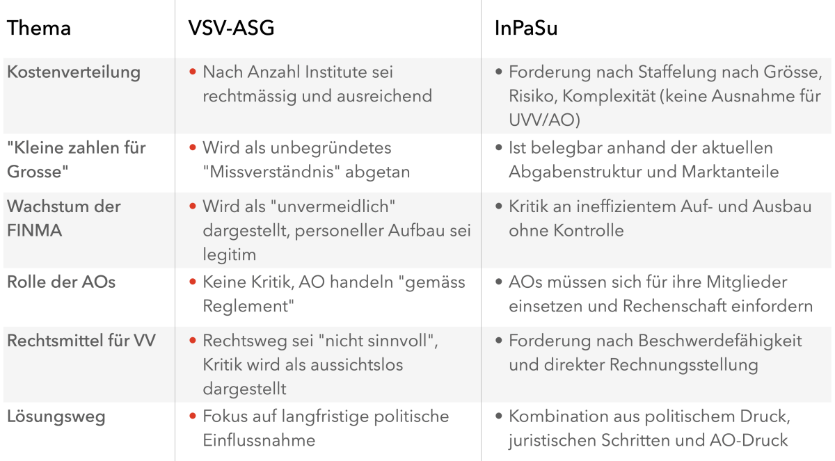 Zwar äussert der VSV Kritik an der Intransparenz der FINMA, doch gleichzeitig werden zentrale Gegenargumente gegen das aktuelle System relativiert oder sogar delegitimiert. Besonders stossend ist: